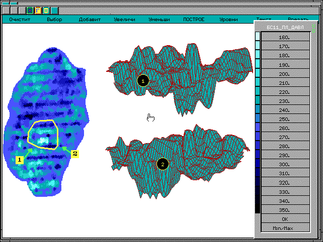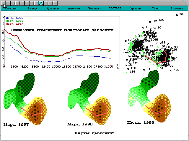 Построение гридов и изолиний может применяться для любого выбранного параметра базы данных.