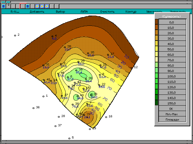 Построение гридов и изолиний может применяться для любого выбранного параметра базы данных.